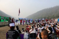 Unarmed soldiers from the KNU, the BGF and the KPC march together without arms in a show of unity as Karens mark their New Year at Shwe Koko.