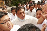 Assailants using slingshots and metal nuts attacked Than Htut Aung as he drove home in central Rangoon, in what may have been a assassination attempt.